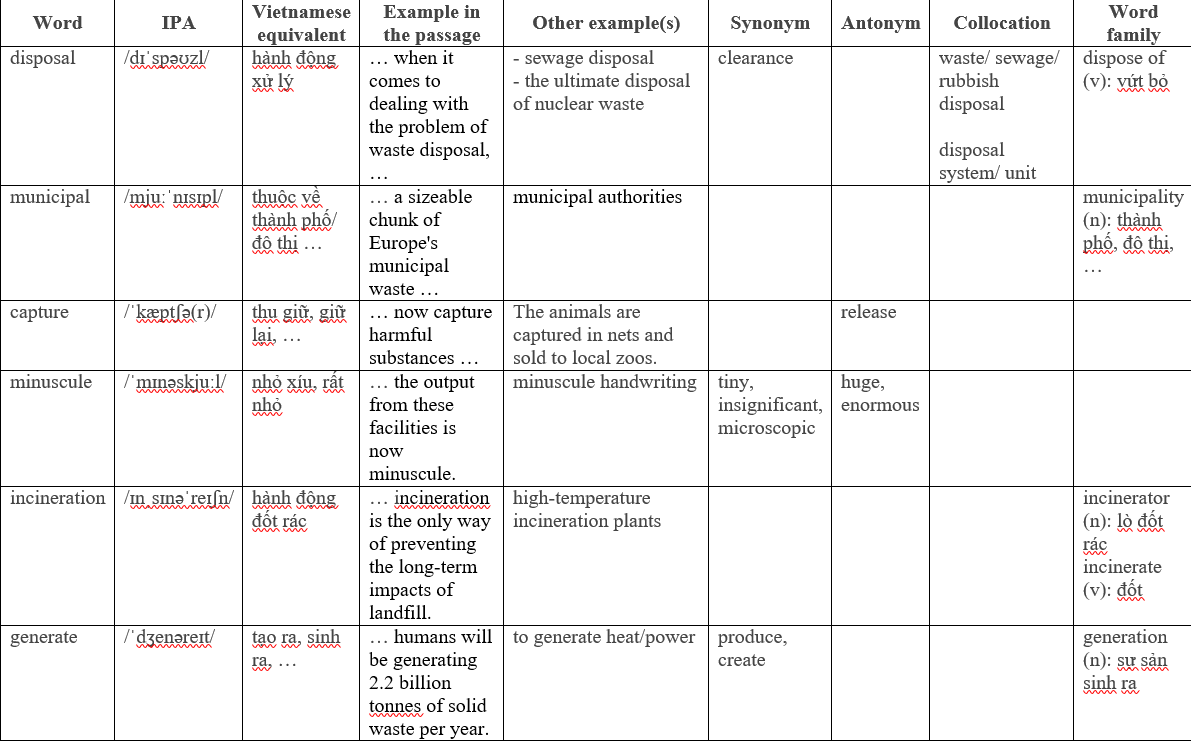 Solving the problem of waste disposal - Đề thi thật IELTS READING kèm đáp án và giải thích từ vựng